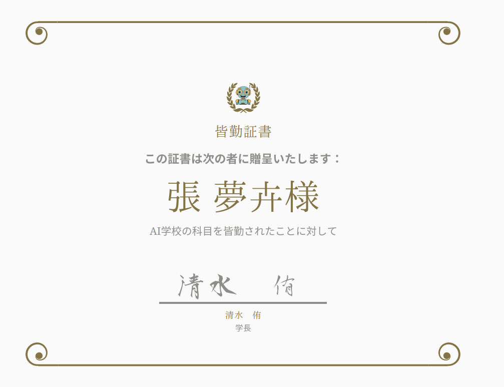 おかげさまで皆勤賞で無事に卒業し、卒業証書もいただきました!✨