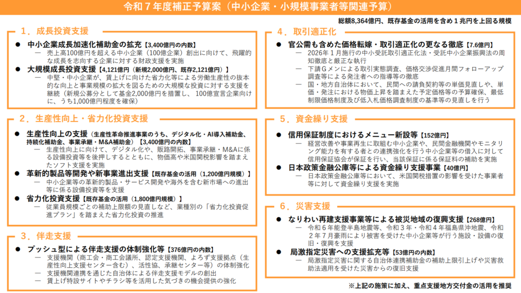 令和7年度補正予算案(中小企業・小規模事業者等関連予算)は、