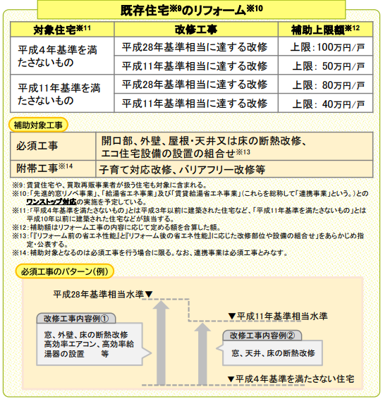 ※ 「『リフォーム前の省エネ性能』と『リフォーム後の省エネ性能』に応じた改修部位や