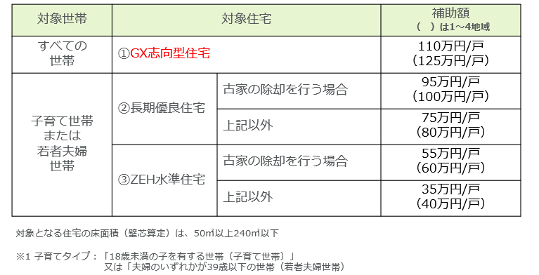 新築は、令和6年度に引き続き、GX志向型住宅はすべての世帯で活用ができます。