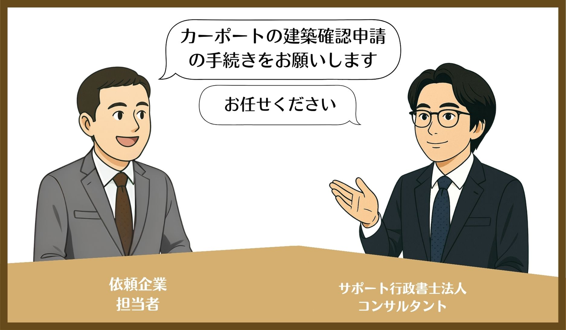 - カーポートの設置を近所の工務店にやってもらおうと思ったら、建築確認申請は自力でやるように言われた。そのため役所に相談もしてみたが、「自力で申請するのはかなり難しい」と言われてしまった。どうすれば良いかわからなかったが、サポート行政書士法人に電話したところ、わかりやすく対応の流れを案内してもらえた。