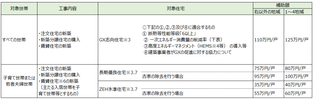 ※3:「GX志向型住宅」は環境省において実施、「長期優良住宅」及び「ZEH水準住宅」は国土交通省において実施。