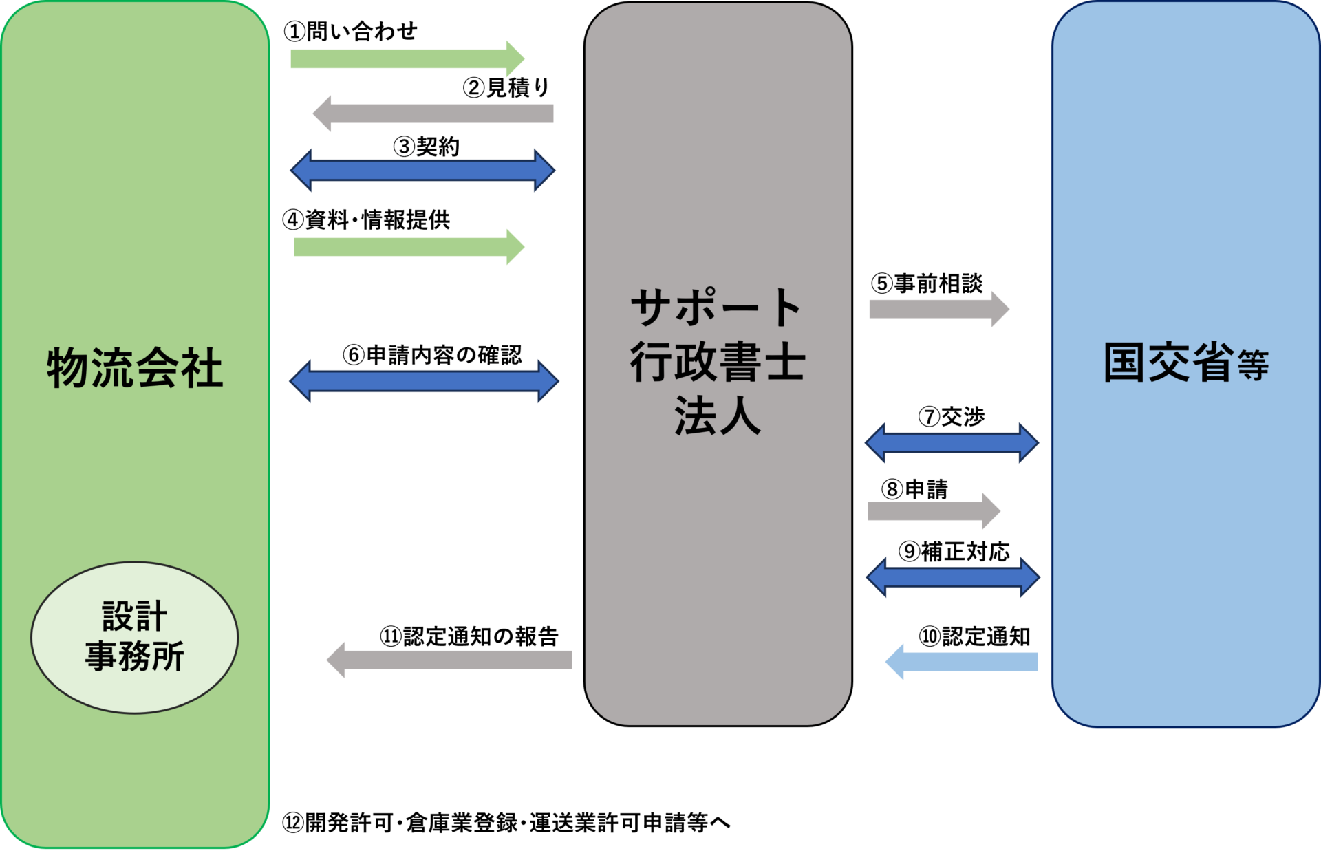 これに加え、物効法認定計画に合わせた倉庫業の登録申請及び一般貨物自動車運送事業の許可申請手続きもトータルでサポートいたしました。