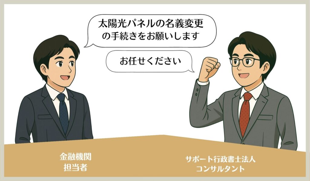 弊社では、金融機関様からも、太陽光名義変更申請の受注実績がございます。