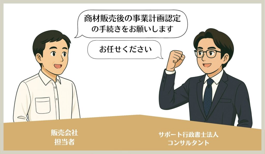上記に当てはまる方、商材販売後の事業計画認定を弊社が代行いたします!