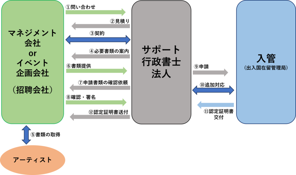まず、海外のアーティストや招聘者・主催者(マネジメント会社やイベント企画会社)が、出演内容・期間・報酬などを決定します。